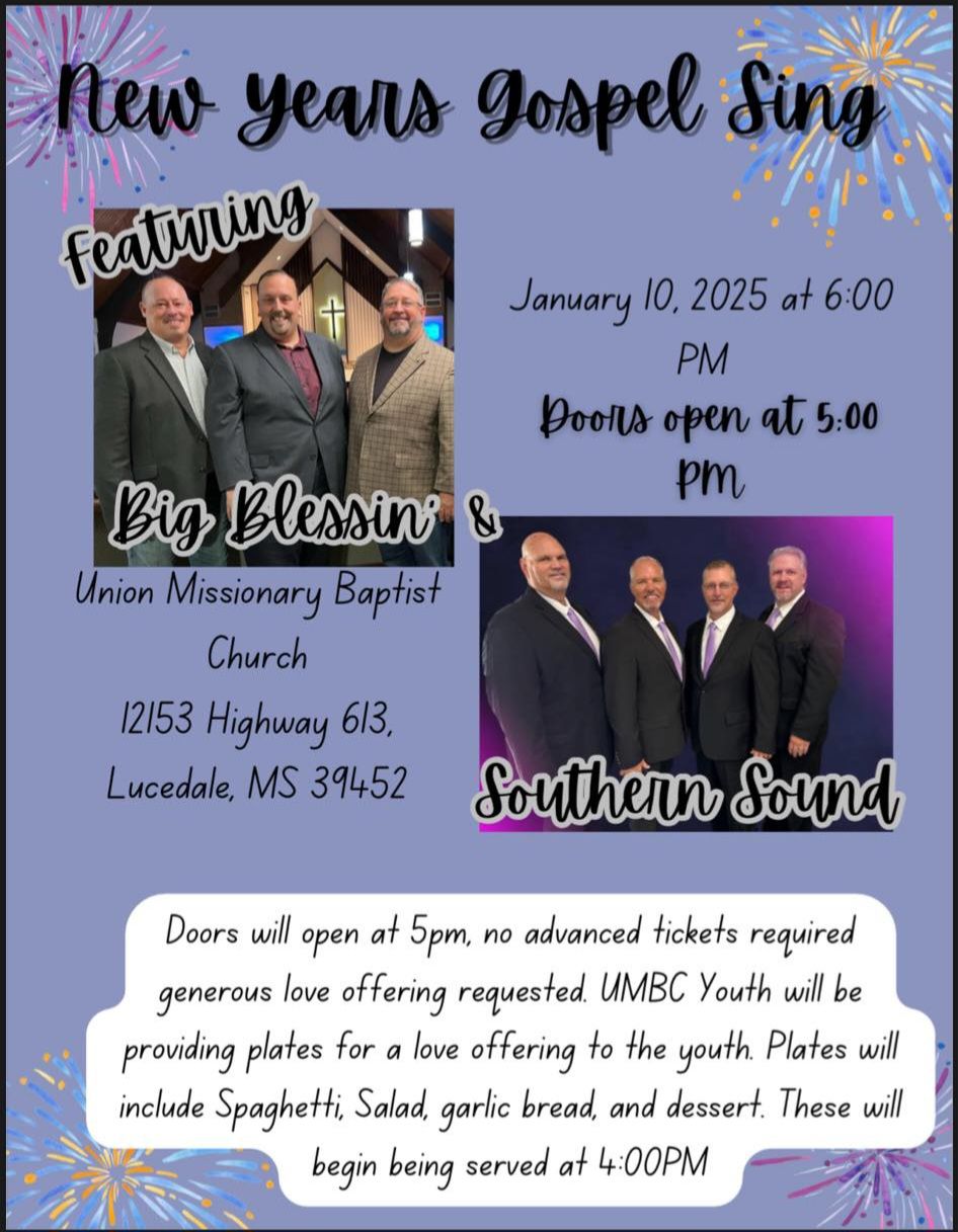 Date: January 10, 2026 / Time: 6pm, Doors open at 5pm / Price: Free. Love Offering will be taken.