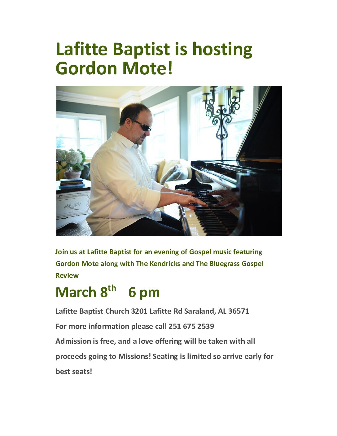 Date: March 7, 2026 / Time: 6pm / Price: Love Offering